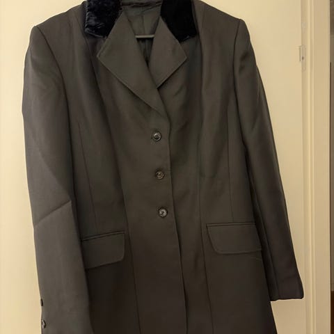 Fin sort stævnejakke fra TuffRider i str 42. Tro mod størrelse. Ingen fejl og mangler. Er vasket. Ikke-ryger