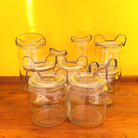 Glas, sylte - confitering - henkogning., Holmegård - Kastrup, Gamle, smukke og helt intakte glas til syltning - henkogning eller confitering. Glassene er i forskellige størrelser: