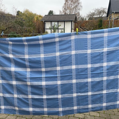 Blå ternet dug i rigtig Retro stof med blomster motiv