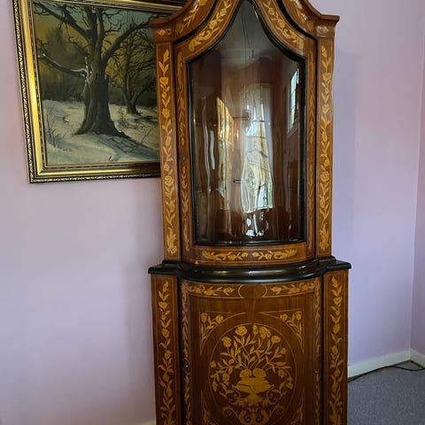 RESERVERET - Fint gammelt vitrineskab / hjørneskab. Buet låge. I rosentræ. Mål se billederne.