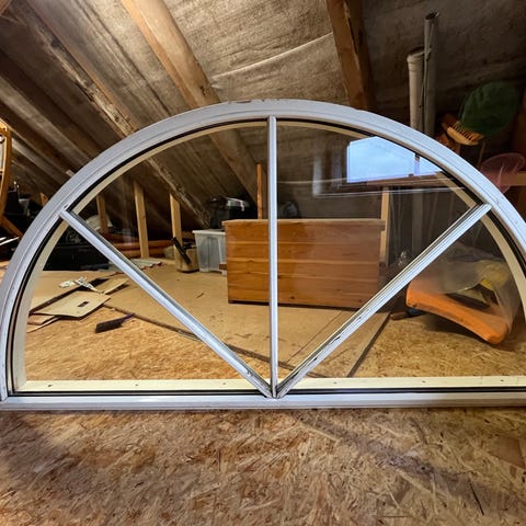Gavlvinduet er 100 år gammelt og er blevet udskiftet i 2025. (Et nyt står til 12.500 kr + moms)