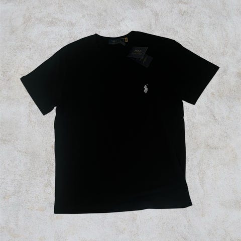 Ralph Lauren Polo T-shirt i sort farve, størrelse L til mænd men den passer mest som M ellers er den helt ny fra kaufmann