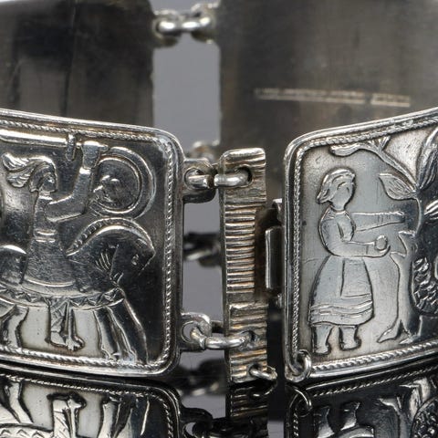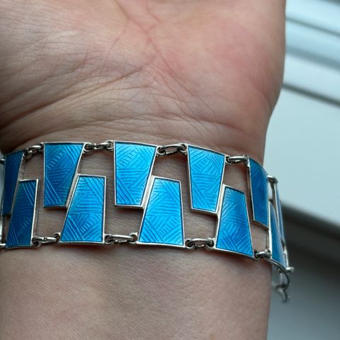 David-Andersen armbånd i sølv til kvinder. Armbåndet har en rund form og er fremstillet af sølv med emalje.