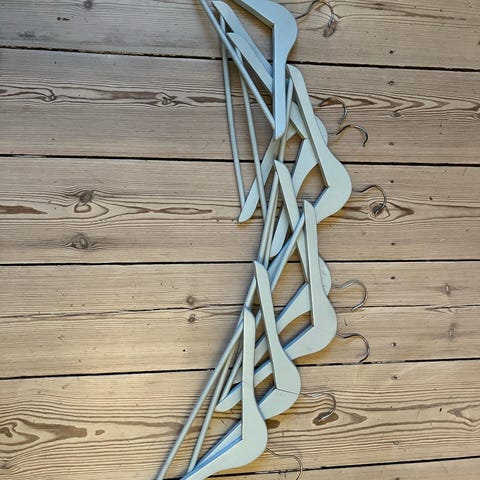 6 fine bøjler i træ. 3 med ko-dekoration og 3 med gris-dekoration. Egnet til småbørnstøj. Sælges samlet.
