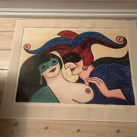 Rammen måler 70 x 100 cm men glasset er knækket i nederste endte hjørne.