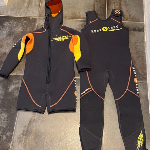 Aqua Lung våddragt i sort og pink farve. Materialet er egnet til vandsport og dykning. Designet til at give beskyttelse og isolering i vandmiljøer.