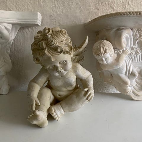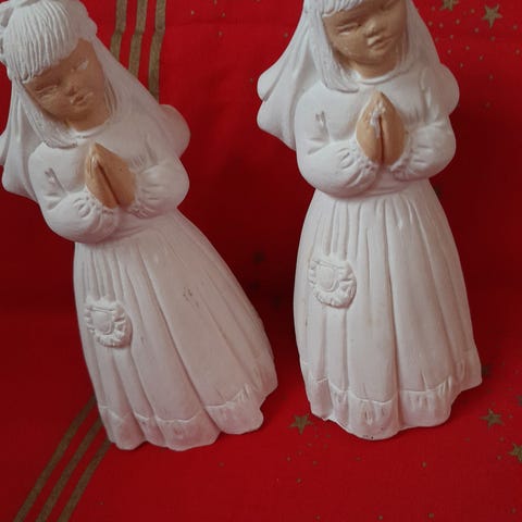Meget fin gammel klosterarbejde , 6 stk . engle og 3 stk . ornamente