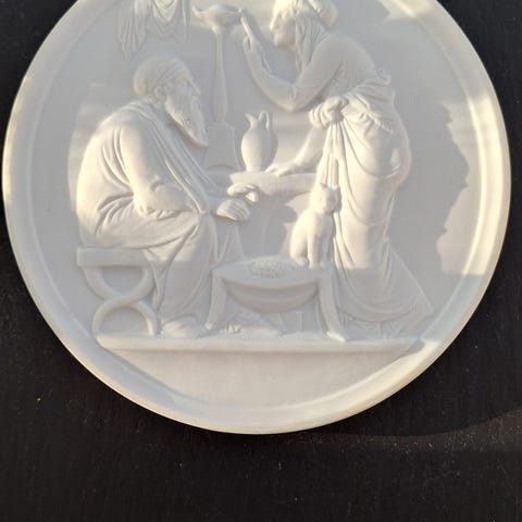 Bing og Grøndahl bisquit platte Mandom og efterår Efter relief modelleret i Rom 1836. Måler 14cm (5.51 inch).