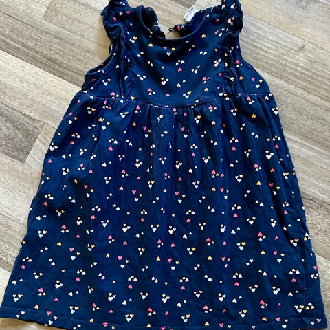H&M Blå Bomuld Kjole til piger i størrelse 140. Kjolen er fremstillet i bomuld og har et mønster med små hvide blomster. Den har lange ærmer og en enkel pasform.