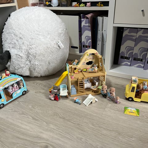 Er flækket i forreste blå bjælke, men holder fint når man leger med den