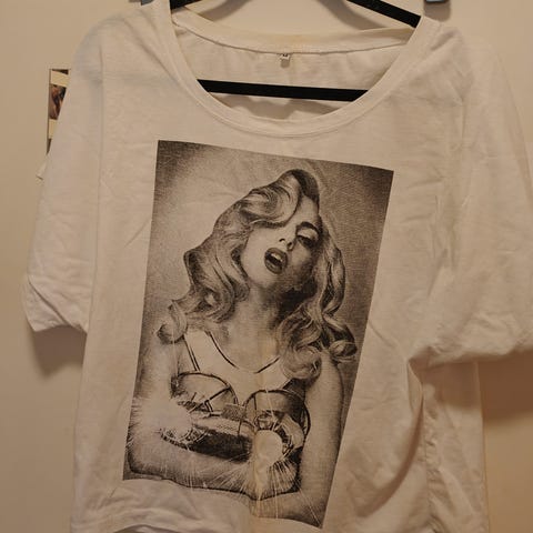 T-shirt med lille ærmegab Sort hvid. One Size Polyester