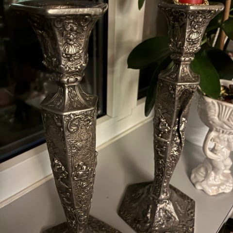 Flotte stager, klassisk 70-er stil, der er lidt rust på fødderne men synes egtl bare det giver patina. Mål på foto. Glasundsatserne til stearinlys er aftagelig.