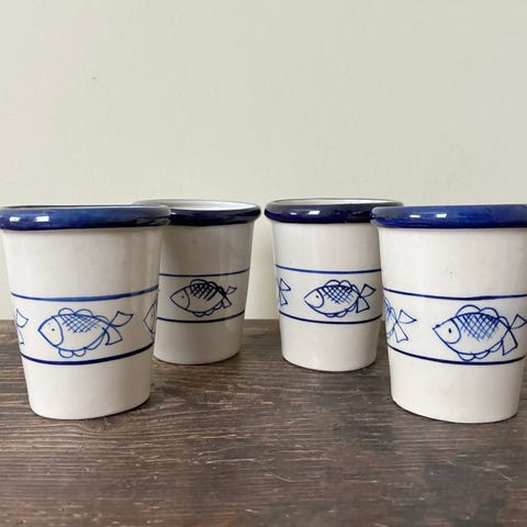 Flot vintage krus fra Otagiri USA med smukke motiver fra fluefiskeri som dekoration på udvendig side af kruset.