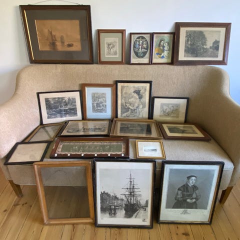 Antikke rammer, 3 antikke rammer af Kgl. Hof Forgylder F.E. Weber & Sønner. Meget smukke og en sjælden høj kvalitet! Forstærket i hjørnerne. Der mangler 2 pynteknopper, men der haves én knop løs – kan monteres på en af rammerne, som mangler.