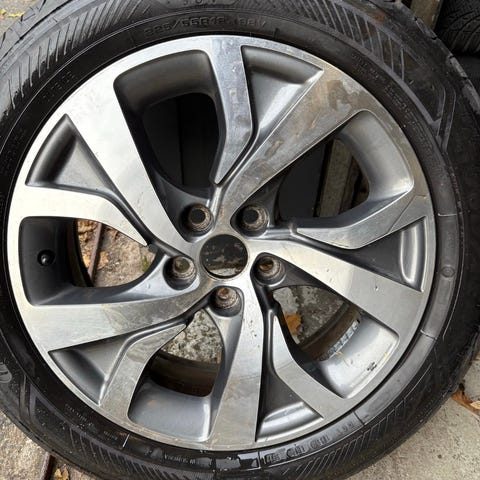 Mitsubishi dæk med fælge. Produktet består af komplette hjul med dæk monteret på fælge. Specifikke detaljer om størrelse, farve, materiale og køn er ikke oplyst.