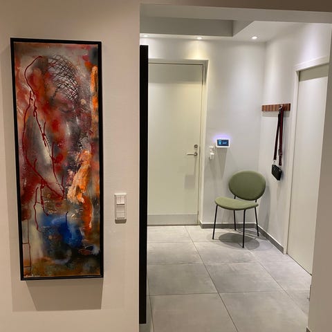 Super flot maleri malet på bestilling af Peter Merved. Mål uden ramme 1 m gange 1 m.