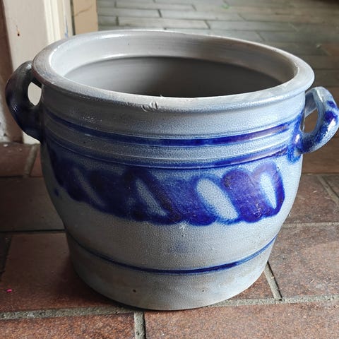 Keramik krukke med hanke blå-hvid