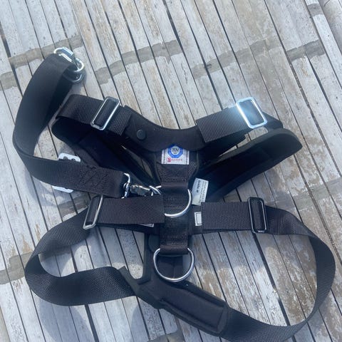 Transportsele til hund med forbindelsesled til sikkerhedsselelås. Regulerbare stropper passer størrelse 30-60 (bryst)