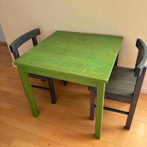 1 IKEA skammel medfølger (evt). Bordplade grå, træben,