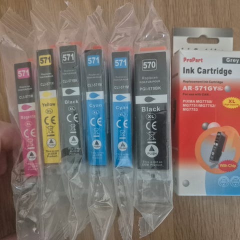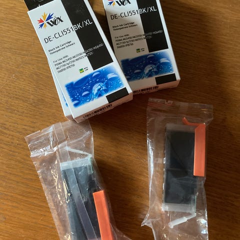 Blækpatroner i forskellige farver, nye og uåbnede i original emballage. Passer til Epson printere. Indeholder flere farver til farveudskrift.