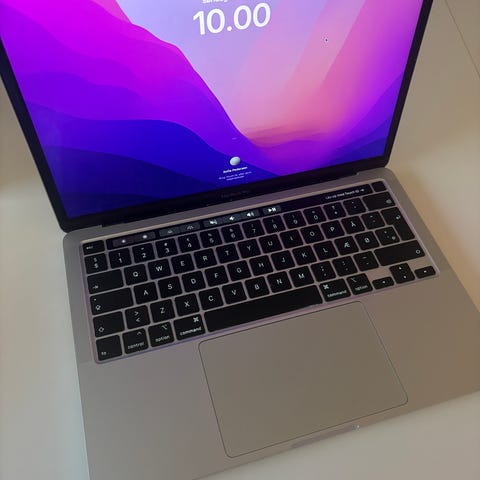 MacBook fra 2020 - i rigtig god stand og godt vedligeholdt. Kun brugt til skolearbejde. Kommer fra ikke ryger hjem og fungere 100 % i orden.
