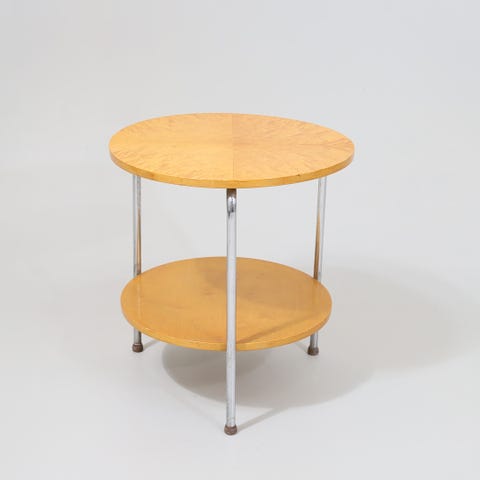 Vintage sideborde / sofaborde i træ og metal med solid glasplade