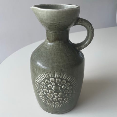 Farve: Let grøn / grågrøn glasur med en slags blomsterdekoration (se billederne).