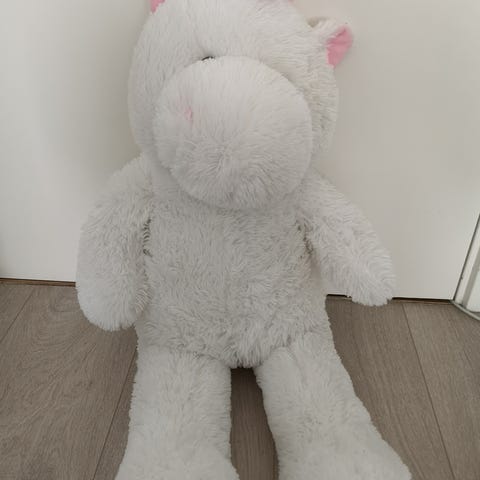 Bamse Enhjørning børnetøj i blødt materiale med flerfarvede detaljer på hove, hale og horn. Egnet som legetøj til børn og til pynt