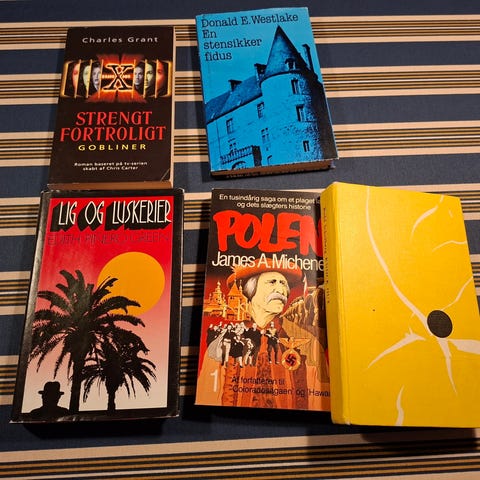 Samlede værker klassiske bøger sæt med røde og grå omslag. Indeholder tre bind med tekst på dansk. Bøgerne har en klassisk indbinding med titel på ryggen.
