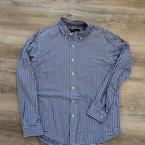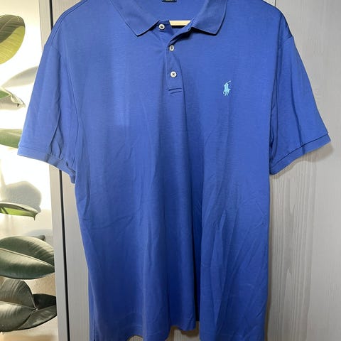 Ralph Lauren Polo i blå farve. Fremstillet i bomuld. Herremodel i størrelse S. Trøjen har broderede detaljer og emblem på brystet.