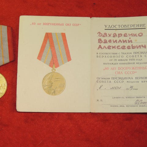 MILITÆR RUSSISK MEDALJE 5 MED TILDELINGSBEVIS