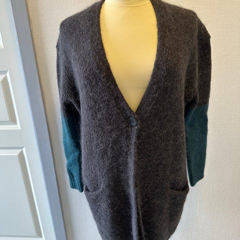 Helt ny lang cardigan i str M. Men 6 knapper og meget smuk detaljer i siden på den.