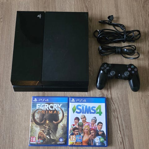 Sælger denne Playstation 4 med tilbehør og 1 spil samle er pris 1900kr men ellers
