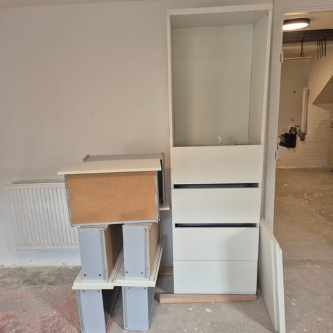 Pænt skab med skuffer og hylder