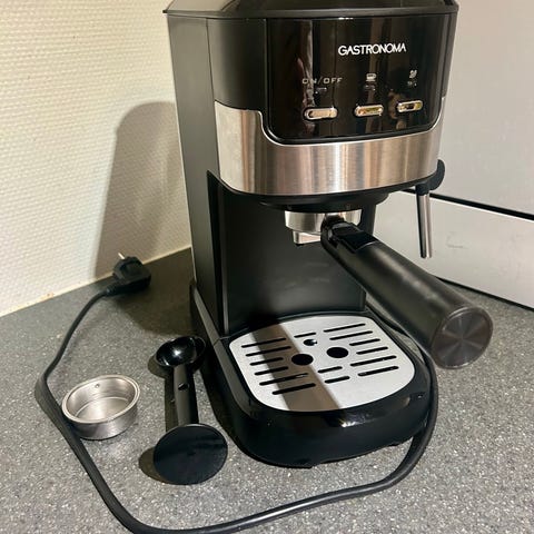 Gastronoma espressomaskine med mælkeskummer i sort og rustfrit stål.