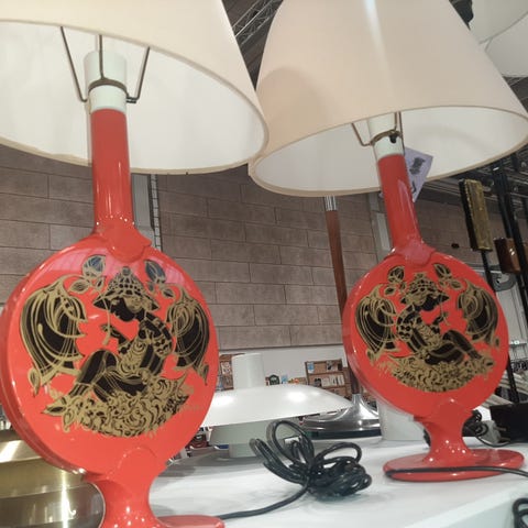 Gummidupper i bund kan let udskiftes om ønskeligt. De havde vist oprindeligt bund m. et 60'er klistermærke fra F&M. Bacchus motiv Semiantik Lyfa Lampe Grålakeret Guld