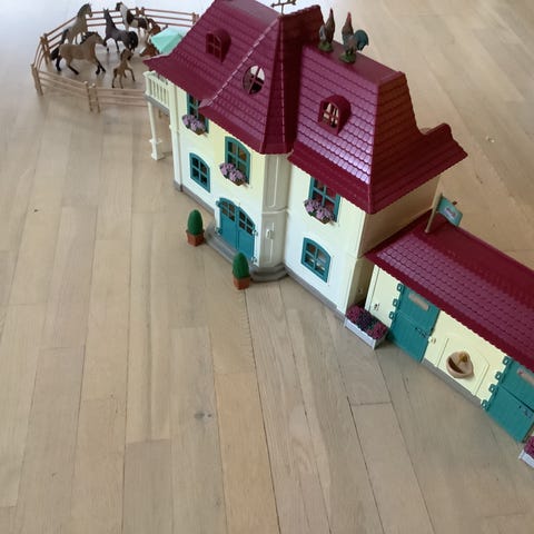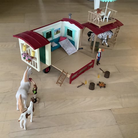 Transportere hestene rundt med denne flotte trailer og bil. Stalde og ekstra heste. Masser af lækkert tilbehør, som gør legen sjovere.