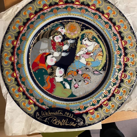 Bjørn Wiinblads juleplatte nr. 2 fra 1972. Tre hellige konger. Caspar. Weihnachtsteller 1972. 3 Heilige Könige. Håndmalet. Pæn stand og i original æske