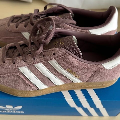 Adidas Gazelle Bold W sneakers i størrelse 37. 1/3Skoene har en lys farve med Adidas' karakteristiske tre striber på siden. Materialet er primært tekstil og syntetisk, designet til hverdag og casual brug.