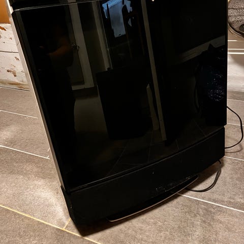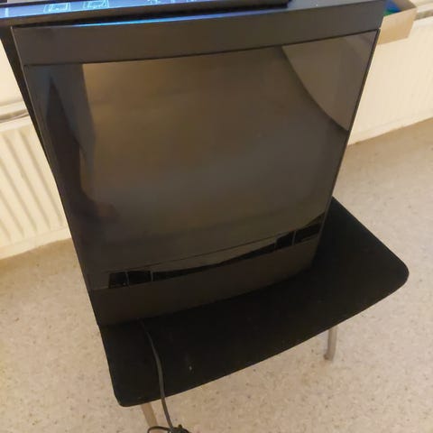 Bang & Olufsen Beovision MX 1500 TV med sort kabinet og integreret højttaler. Modellen har et karakteristisk design med glasfront og sider med ventileret struktur.