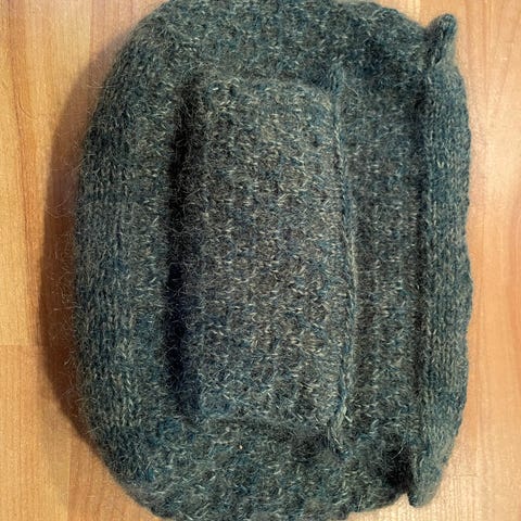 Hjemmelavet mini kosmetikpung. Aldrig brugt. Marineblå. Strikket i mohair og uld blanding. Strikket i honey comb mønster. Foer i viscose. Længde 10 cm, højde 6 cm og bredde 3.5 cm. Kommer fra rygefrit hjem.