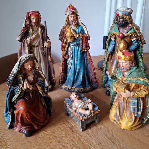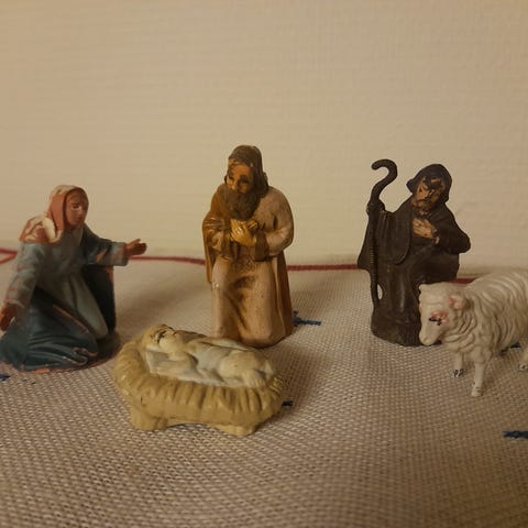 Dette er ikke krybbespilfigurer til krybbespil men figurer til hyrdespil. Kitsch ironisk humoristisk julepynt til dem der er til den slags