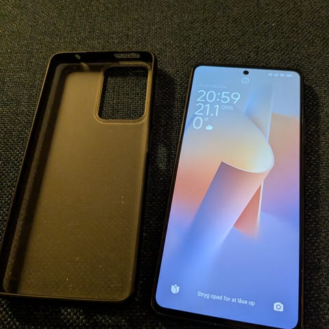 Der er panzerglas på og cover følger med.