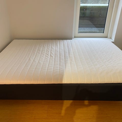 Sengen er i god stand og skiftes kun ud pga. samflytning. Der har været topmadras på hele tiden, så madrassen er pæn og uden pletter.