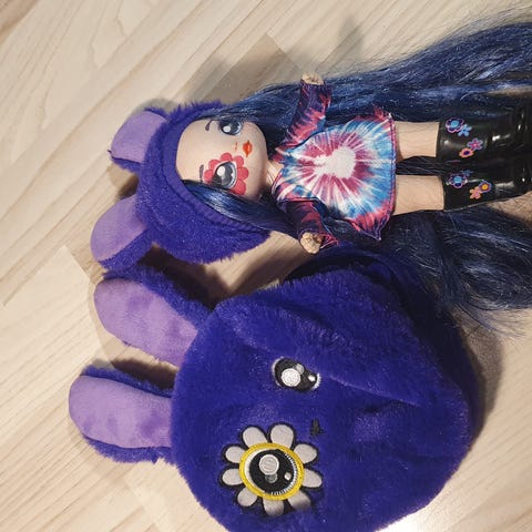 Super god kvalitetsdukke i blødt materiale med stof overflade og det meget gode nylon hår der ikke kruser og bliver til en filterbunke.