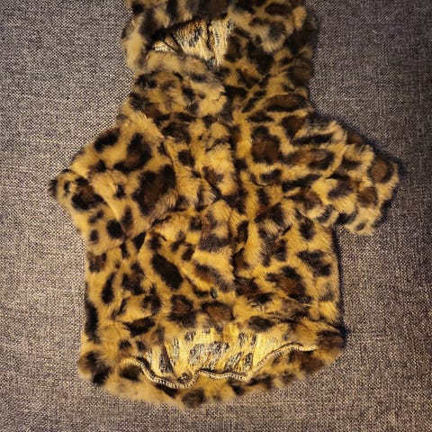 Varm fleeceforet lyserød leopardmønstret kæledyrsjakke med lynlås, hue og søde øre