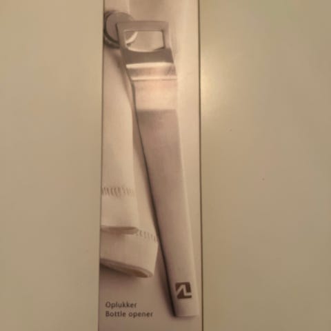 Åbneren er fremstillet i støbejern og har teksten "MACKESON!" indgraveret på håndtaget på begge sider.