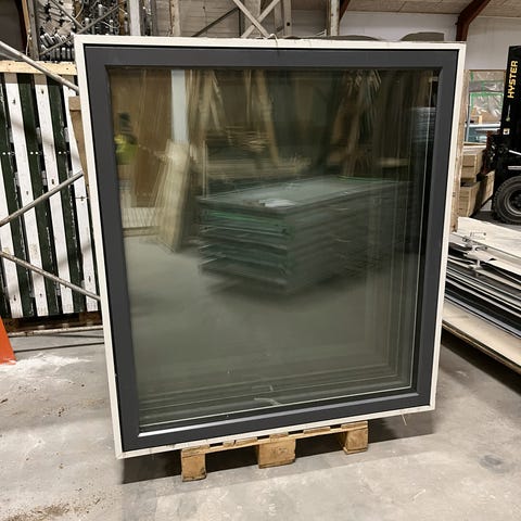 Topstyret i alu./træ med 3 lags energiruder og med varm kant. Hvidt indvendigt og mørkegrå alu. kan udvendigt.