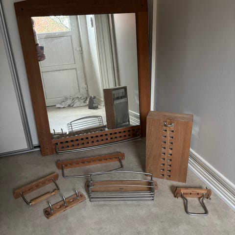 Trip Trap spejl med glashylde. Teaktræsramme.