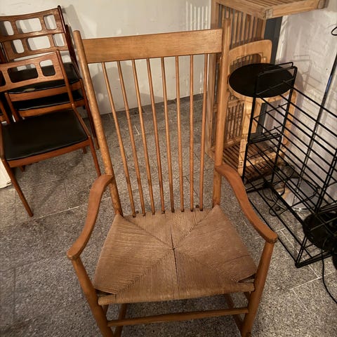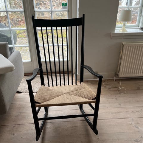 J16 gyngestol i flot mørkegrøn farve sælges. Har lidt brugsspor hist og her, som også fremgår af billederne, dog er den helt fast i flettet.